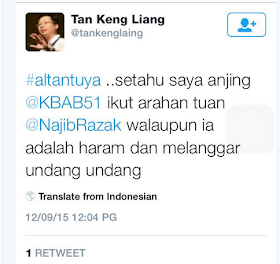 Beliau turut menyiarkan semula pos pengguna yang memperkenalkan dirinya sebagai Tan Keng Liang itu.