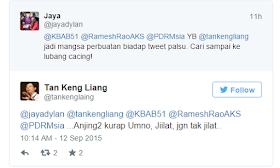 Dipercayai akaun itu dipunyai seseorang yang menyamar sebagai Ketua Pemuda Gerakan, Tan Keng Liang.